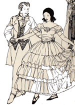 The Court of the King and Queen of England, known as the Court of St James, was the center of all power. The “season” started with the young lady’s presentation to the court during which she bowed to the Queen – thus the name “The St. James Bow”. (This gesture is made today as the young lady is formally presented.)